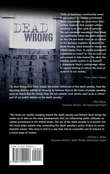 Attitudes toward the death penalty have changed dramatically throughout the course of history, evolving from times when public executions were occasions of solemn and pious ritual to excuses for raucous entertainment, and finally to the modern era of private, bureaucratized, mechanized, and sanitized executions that are out of sight and out of mind. Conforming thus to modern sensibilities, state-sanctioned killing is somehow more acceptable to us than public hangings would have been, because we can imagine that the inmate's death is relatively painless, and not in violation of the Eighth Amendment's prohibition against cruel and unusual punishment. This may or may not be true; Stack presents compelling arguments to the contrary. What is certain is that Dead Wrong demonstrates beyond a doubt that death row is itself a form of psychological torture and of slow, painful dehumanization. Polls indicate that 75 percent of Americans favor the death penalty-but they also show that minds change when individuals are confronted with the facts. This book was written to offer those facts-and to change those minds. The United States is alone among Western democracies in its support for capital punishment, which was only briefly abolished throughout this country between 1972 and 1976. Today, 38 states have some form of capital punishment. Yet studies show that the death penalty is not a deterrent to crime, that racial disparities in the implementation of capital punishment are rampant, and that all kinds of procedural errors, incompetent defense lawyers, and mistaken eyewitness identifications lead to an alarming number of wrongful convictions. Attitudes toward the death penalty have changed dramatically throughout the course of history, evolving from times when public executions were occasions of solemn and pious ritual to those when it was an excuse for raucous entertainment, and finally to the modern era of private, bureaucratized, mechanized, and sanitized executions conducted out of sight and out of mind. Conforming thus to modern sensibilities, state-sanctioned killing is somehow more acceptable to us than public hangings, because we can imagine that the inmate's death is relatively painless, and not in violation of the Eighth Amendment's prohibition against cruel and unusual punishment. This may or may not be true; Stack presents compelling arguments to the contrary. What is certain is that Dead Wrong demonstrates beyond a doubt that death row is itself a form of psychological torture and of slow, painful dehumanization.