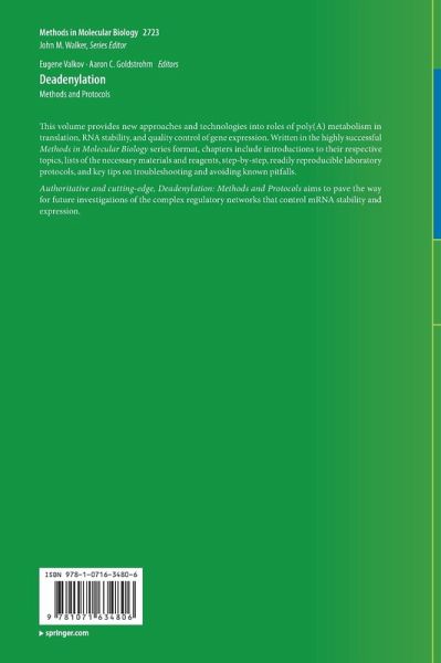 The reconstitution of human CCR4-NOT from purified proteins and an assay of its deadenylation activity.- In vitro reconstitution of the Drosophila melanogaster CCR4-NOT complex to assay deadenylation.- Analysis of human mRNA deadenylation complexes via high-resolution gel electrophoresis.- Quantitative biochemical analysis of deadenylase enzymes using fluorescence and chemiluminescence-based assays.- A FRET-based assay to quantify enzymatic rates and explore the mechanisms of RNA deadenylases in heterogeneous environments.- Measuring Poly-Adenosine Tail Length of RNAs by High Resolution Northern Blotting Coupled with RNase H Cleavage.- An RNA-ligation-based RACE-PAT assay to monitor poly(A) tail length of mRNAs of interest.- Dissecting the role of the Ccr4-Not deadenylase complex in pluripotency and differentiation.- Measuring proximity-mediated function of mRNA regulatory proteins by engineered tethering.-Tethered mRNA Amplifier: A NovelApproach to Increase Protein Expression.- RNA binding protein-mediated mRNA deadenylation in mammalian cell extracts.- Transcriptome-wide analysis of mRNA adenylation status in yeast using nanopore sequencing.- Sequencing of transcriptome-wide poly(A) tails by PAIso-seq.- Nano3'RACE: a method to analyze poly(A) tail length and nucleotide additions at the 3' extremity of selected mRNAs using nanopore sequencing.- Quantification of poly(A) tail length and terminal modifications using direct RNA sequencing.- Differential poly(A) tail length analysis using nanopore sequencing.- Single-molecule poly(A) tail sequencing (SM-PATseq) using the PacBio platform.- Mathematical models for the poly(A) tail shortening process.