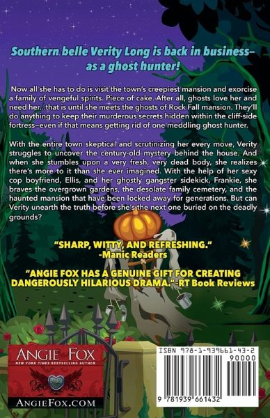 Southern belle Verity Long is back in business—as a ghost hunter. Now all she has to do is visit the town's creepiest mansion and exorcise a family of vengeful spirits. Piece of cake. After all, ghosts love her and need her...that is until she meets the ghosts of Rock Fall mansion. They'll do anything to keep their murderous secrets hidden within the cliff-side fortress—even if that means getting rid of one meddling ghost hunter. With the entire town skeptical and scrutinizing her every move, Verity struggles to uncover the century-old mystery behind the house. And when she stumbles upon a very fresh, very dead body, she realizes there’s more to it than she ever imagined. With the help of her sexy cop boyfriend, Ellis, and her ghostly gangster sidekick, Frankie, she braves the overgrown gardens, the desolate family cemetery, and the haunted mansion that have been locked away for generations. But can Verity unearth the truth before she's the next one buried on the deadly grounds?