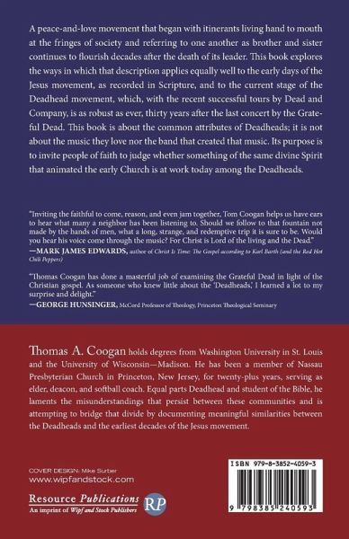 Thomas A. Coogan holds degrees from Washington University in St. Louis and the University of Wisconsin-Madison. He has been a member of Nassau Presbyterian Church in Princeton, New Jersey, for twenty-plus years, serving as elder, deacon, and softball coach. Equal parts Deadhead and student of the Bible, he laments the misunderstandings that persist between these communities and is attempting to bridge that divide by documenting meaningful similarities between the Deadheads and the earliest decades of the Jesus movement.