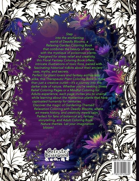 Step into the enchanting world of Deadly Blooms, a Relaxing Garden Coloring Book that combines the beauty of nature with the mystique of poisonous plants. Designed for stress relief and creativity, this Floral Fantasy Coloring Book offers intricate illustrations of toxic flora, paired with fascinating historical tidbits about their ancient uses, myths, and secrets. Perfect for plant lovers and fantasy enthusiasts alike, this Therapeutic Plant Coloring Book is more than just a creative outlet-it's a journey into the darker side of nature. Whether you're seeking Stress Relief Coloring Pages or a Mindful Coloring for Adults experience, each page invites you to unwind while learning about the mysterious plants that have captivated humanity for centuries. Discover the magic of Gardening-Themed Relaxation Coloring with Deadly Blooms, where art meets history, and creativity meets calm. Perfect for fans of botanical art, fantasy storytelling, and Adult Coloring Book Nature themes. Let your imagination bloom!