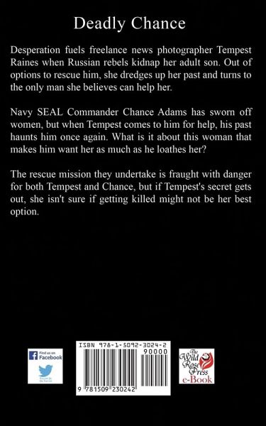 Desperation fuels freelance news photographer Tempest Raines when Russian rebels kidnap her adult son. Out of options to rescue him, she dredges up her past and turns to the only man she believes can help her. Navy SEAL Commander Chance Adams has sworn off women, but when Tempest comes to him for help, his past haunts him once again. What is it about this woman that makes him want her as much as he loathes her? The rescue mission they undertake is fraught with danger for both Tempest and Chance, but if Tempest's secret gets out, she isn't sure if getting killed might not be her best option.
