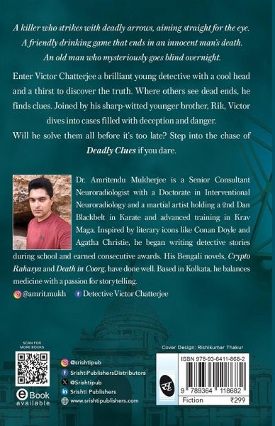 A killer who strikes with deadly arrows, aiming straight for the eye.A friendly drinking game that ends in an innocent man's death. An old man who mysteriously goes blind overnight.Enter Victor Chatterjee-a brilliant young detective with a cool head and a thirst to discover the truth. Where others see dead ends, he finds clues. Joined by his sharp-witted younger brother, Rik, Victor dives into cases filled with deception and danger.Will he solve them all before it's too late? Step into the chase of Deadly Clues-if you dare.