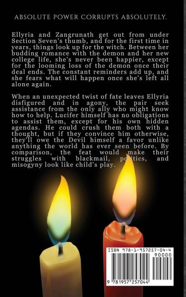 Ellyria and Zangrunath get out from under Section Seven's thumb, and for the first time in years, things look up for the witch. Between her budding romance with the demon and her new college life, she's never been happier, except for the looming loss of the demon once their deal ends. The constant reminders add up, and she fears what will happen once she's left all alone again. When an unexpected twist of fate leaves Ellyria disfigured and in agony, the pair seek assistance from the only ally who might know how to help. Lucifer himself has no obligations to assist them, except for his own hidden agendas. He could crush them both with a thought, but if they convince him otherwise, they'll owe the Devil himself a favor unlike anything the world has ever seen before. By comparison, the feat would make their struggles with blackmail, politics, and misogyny look like child's play. This book was originally published as Ex Gratia, Book 2 of the Terms and Conditions trilogy.