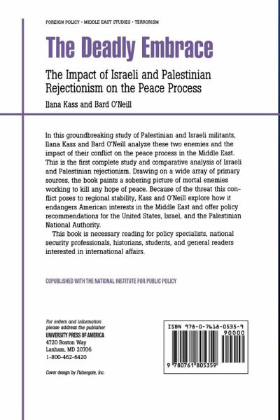 The purpose of this book is three-fold: First, drawing on a wide array of primary and secondary sources, it aims to compare and contrast the historical roots, goals, strategies, organizational structures, and current activities of Palestinian and Israeli opponents of any mutual compromise. Second, the book assesses the dynamic interaction of two rejectionist movements, espousing mutually exclusive political agendas and demonstrates how they feed off and reinforce each others enmities. Third, the book seeks to expose to public scrutiny a deeply-entrenched phenomenon that has continued to lurk in the shadows, while enjoying both tacit and direct support from segments within the American Arab and Jewish communities. Although such recent outrages as the Hebron massacre, the Rabin assassination and the spate of suicide bombings in Israel's cities have re-centered attention on Middle Eastern terrorism, the primary focus has been on lone actions of deranged individuals. In contrast, the authors contend that what we have witnessed thus far is merely the tip of the iceberg-overt manifestations of a deep-seated, festering problem, namely: increasingly militant insurgent movements, united in their near-term aim of destroying the peace process, but ultimately sworn to destroy each other. The book concludes with a set of policy choices and recommendations which the U.S., Israel and the Palestinian National Authority should pursue in tandem to marginalize the rejectionist threat, before it escalates to hitherto unimaginable levels of violence. Co-published with the National Institute of Public Policy.