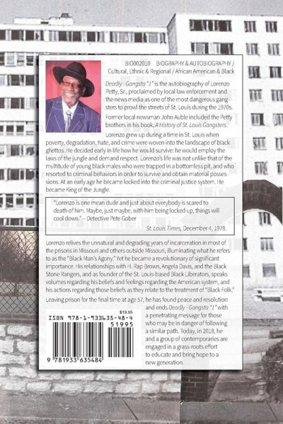 Deadly-Gangsta "1" is the autobiography of Lorenzo Petty, Sr., proclaimed by local law enforcement and the news media as one of the most dangerous gangsters to prowl the streets of St. Louis during the 1970s. Former local newsman John Auble included the Petty brothers in his book, A History of St. Louis Gangsters. Lorenzo grew up during a time in St. Louis when poverty, degradation, hate, and crime were woven into the landscape of black ghettos. He decided early in life how he would survive: he would employ the laws of the jungle and demand respect. Lorenzo's life was not unlike that of the multitude of young black males who were trapped in a bottomless pit, and who resorted to criminal behaviors in order to survive and obtain material possessions. At an early age he became locked into the criminal justice system. He became King of the Jungle."Lorenzo is one mean dude and just about everybody is scared to death of him. Maybe, just maybe, with him being locked up, things will cool down."- Detective Pete Gober St. Louis Times, December 4, 1978.Lorenzo relives the unnatural and degrading years of incarceration in most of the prisons in Missouri and others outside Missouri, illuminating what he refers to as the "Black Man's Agony." Yet he became a revolutionary of significant importance. His relationships with H. Rap Brown, Angela Davis, and the Black Stone Rangers, and as founder of the St. Louis-based Black Liberators, speaks volumes regarding his beliefs and feelings regarding the American system, and his actions regarding those beliefs as they relate to the treatment of "Black Folk." Leaving prison for the final time at age 57, he has found peace and resolution and ends Deadly Gangsta "1" with a penetrating message for those who may be in danger of following a similar path. Today, in 2018, he and a group of contemporaries are engaged in a grass-roots effort to educate and bring hope to a new generation.