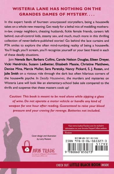 In the expert hands of fourteen unsurpassed storytellers, being a housewife takes on a whole new meaning. Get ready for a lethal mix of meddling mothers-in-law, creepy neighbors, cheating husbands, fickle female friends, careers left behind, out-of-control kids, steamy sex, and much, much more in this thrilling collection of stories. Go behind the lace curtains and PTA smiles to explore the often mind-numbing reality of being a housewife. You'll laugh, you'll scream, you'll recognize yourself or your best friend in each of these deadly situations.