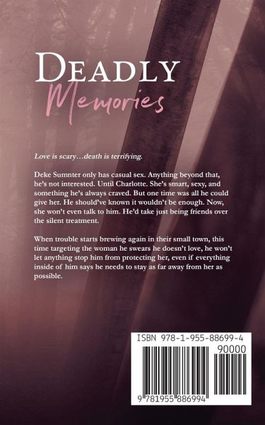 In the intense romantic suspense Deadly Memories from USA Today bestselling author Amanda Siegrist, one man must push his fears aside to save the woman he loves. Love is scary...death is terrifying. Deke Sumnter only has casual sex. Anything beyond that, he's not interested. Until Charlotte. She's smart, sexy, and something he's always craved. But one time was all he could give her. He should've known it wouldn't be enough. Now, she won't even talk to him. He'd take just being friends over the silent treatment. When trouble starts brewing again in their small town, this time targeting the woman he swears he doesn't love, he won't let anything stop him from protecting her, even if everything inside of him says he needs to stay as far away from her as possible. Captivating suspense and electric romance unite in this emotional thriller that will leave you breathless. One-click now to start reading today! The entire Lucky Town Novel series: (Each book can be read as a standalone.) Escaping Memories (Book 1): Logan & Aubrey Dangerous Memories (Book 2): Danny & Kat Stolen Memories (Book 3): Seth & Pepper Deadly Memories (Book 4): Deke & Charlotte Forgotten Memories (Book 5): Bolt & Cherry