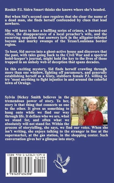 Rookie P.I. Sidra Smart thinks she knows where she’s headed. But when Sid’s second case requires that she clear the name of a dead man, she finds herself confounded by clues that lead nowhere. She will have to face a baffling series of crimes, a burned-out office, the disappearance of a local preacher’s wife, and the recurring suspicion that answers lurk in the alligator-infested bayous and murky swamps of the Texas/Louisiana border region. To boot, Sid moves into a ghost-active house and discovers that the past, with tales going back to the Civil War and a spectral hotel-keeper’s journal, might hold the key to the lives of those trapped in an unholy web of deception that spans decades. In this exciting mystery, Sid finds herself crawling through more than one window, fighting off paramours, and generally establishing herself as a feisty, stubborn female P.I. willing to try ’most anything to fight injustice in and around the colorful town of Orange.