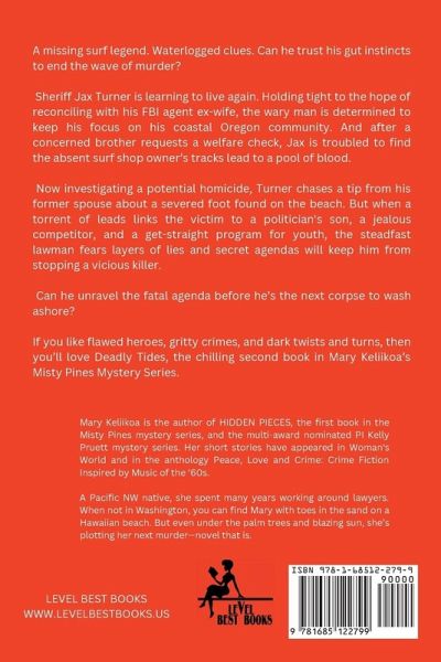 A missing surf legend. Waterlogged clues. Can he trust his gut instincts to end the wave of murder? Sheriff Jax Turner is learning to live again. Holding tight to the hope of reconciling with his FBI agent ex-wife, the wary man is determined to keep his focus on his coastal Oregon community. And after a concerned brother requests a welfare check, Jax is troubled to find the absent surf shop owner's tracks lead to a pool of blood. Now investigating a potential homicide, Turner chases a tip from his former spouse about a severed foot found on the beach. But when a torrent of leads links the victim to a politician's son, a jealous competitor, and a get-straight program for youth, the steadfast lawman fears layers of lies and secret agendas will keep him from stopping a vicious killer. Can he unravel the fatal agenda before he's the next corpse to wash ashore? If you like flawed heroes, gritty crimes, and dark twists and turns, then you'll love Deadly Tides, the chilling second book in Mary Keliikoa's Misty Pines Mystery Series.