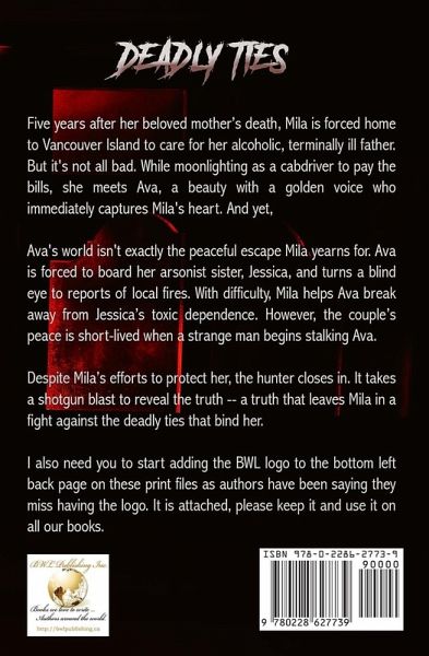Five years after her beloved mother's death, Mila is forced home to Vancouver Island to care for her alcoholic, terminally ill father. But it's not all bad. While moonlighting as a cabdriver to pay the bills, she meets Ava, a beauty with a golden voice who immediately captures Mila's heart. And yet, Ava's world isn't exactly the peaceful escape Mila yearns for. Ava is forced to board her arsonist sister, Jessica, and turns a blind eye to reports of local fires. With difficulty, Mila helps Ava break away from Jessica's toxic dependence. ¿However, the couple's peace is short-lived when a strange man begins stalking Ava. Despite Mila's efforts to protect her, the hunter closes in. It takes a shotgun blast to reveal the truth -- a truth that leaves Mila in a fight against the deadly ties that bind her.