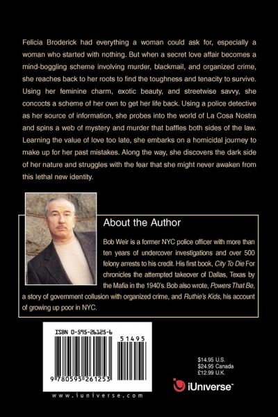 Felicia Broderick had everything a woman could ask for, especially a woman who started with nothing. But when a secret love affair becomes a mind-boggling scheme involving murder, blackmail, and organized crime, she reaches back to her roots to find the toughness and tenacity to survive. Using her feminine charm, exotic beauty, and streetwise savvy, she concocts a scheme of her own to get her life back. Using a police detective as her source of information, she probes into the world of La Cosa Nostra and spins a web of mystery and murder that baffles both sides of the law. Learning the value of love too late, she embarks on a homicidal journey to make up for her past mistakes. Along the way, she discovers the dark side of her nature and struggles with the fear that she might never awaken from this lethal new identity.