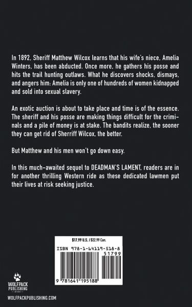 In 1892, Sheriff Matthew Wilcox learns that his wife's niece, Amelia Winters, has been abducted. Once more, he gathers his posse and hits the trail hunting outlaws. What he discovers shocks, dismays, and angers him: Amelia is only one of hundreds of women kidnapped and sold into sexual slavery. An exotic auction is about to take place and time is of the essence. The sheriff and his posse are making things difficult for the criminals and a pile of money is at stake. The bandits realize, the sooner they can get rid of Sherriff Wilcox, the better. But Matthew and his men won't go down easy. In this much-awaited sequel to DEADMAN'S LAMENT, readers are in for another thrilling Western ride as these dedicated lawmen put their lives at risk seeking justice.