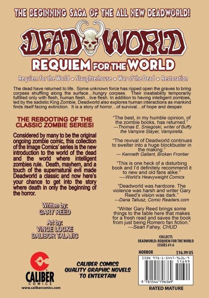 Before there was The Walking Dead there was Deadworld. Here is an introduction of the long running classic horror series, Deadworld, to a new audience! Considered by many to be the godfather of the original zombie comic with over 100 issues and graphic novels in print and over 1,000,000 copies sold, Deadworld ripped into the undead with intelligent zombies on a mission and a group of poor teens riding in a school bus desperately try to stay one step ahead of the sadistic, Harley-riding King Zombie. Death, mayhem, and a touch of supernatural evil made Deadworld a classic and now here's your chance to get into the story! This is a graphic novel compilation of the six issues that rebooted the classic series. Deadworld - a world that has suffered the unleashing of a supernatural holocaust as the dead return to walk the Earth. Isolated pockets of humanity struggle to survive. It is a world torn apart by death, yet surprisingly, held together by hope. Deadworld, where death is only the beginning of the horror. Collects issues #1-5 of comic series Deadworld: Requiem for the World.