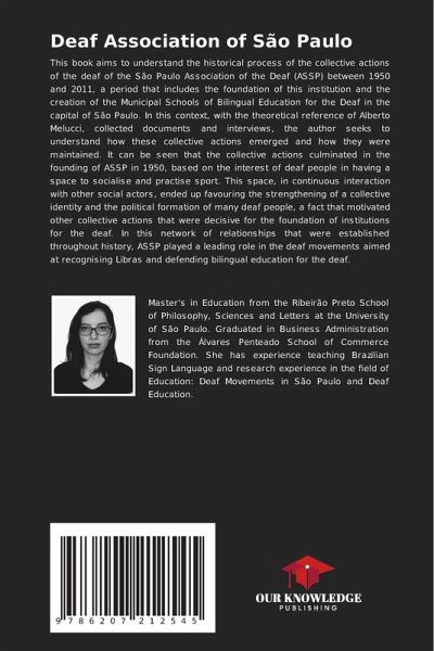 This book aims to understand the historical process of the collective actions of the deaf of the São Paulo Association of the Deaf (ASSP) between 1950 and 2011, a period that includes the foundation of this institution and the creation of the Municipal Schools of Bilingual Education for the Deaf in the capital of São Paulo. In this context, with the theoretical reference of Alberto Melucci, collected documents and interviews, the author seeks to understand how these collective actions emerged and how they were maintained. It can be seen that the collective actions culminated in the founding of ASSP in 1950, based on the interest of deaf people in having a space to socialise and practise sport. This space, in continuous interaction with other social actors, ended up favouring the strengthening of a collective identity and the political formation of many deaf people, a fact that motivated other collective actions that were decisive for the foundation of institutions for the deaf. In this network of relationships that were established throughout history, ASSP played a leading role in the deaf movements aimed at recognising Libras and defending bilingual education for the deaf.