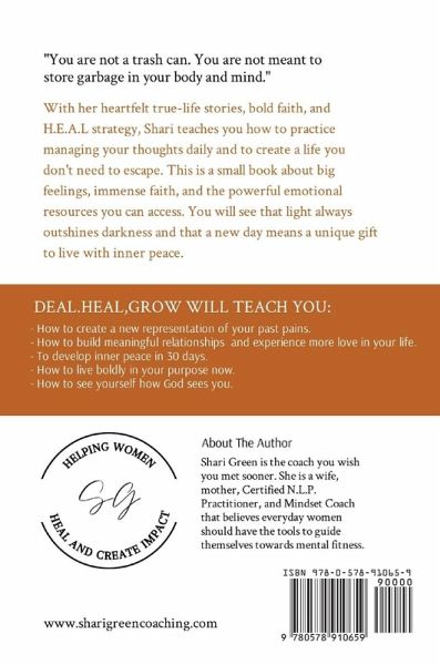 Searching for purpose. Self- Sabotaging. Struggling with spirituality. Childhood trauma. Loss of two children. Shari Green has experienced all those things, and she knows that so many of you have too. Now, she teaches you how to deal, heal, and develop inner peace in 30 days. With her heartfelt true-life stories, bold faith, and H.E.A.L strategy, Shari teaches you how to practice managing your thoughts daily and to create a life you don't need to escape. This is a small book about big feelings, immense faith, and the powerful emotional resources you can access. You will see that light always outshines darkness and that a new day means a unique gift to live with inner peace.