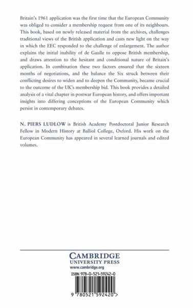 Britain's 1961 application was the first time that the European Community was obliged to consider a membership application from one of its neighbours. This 1997 book, based on material from the archives, challenges traditional views of the British application and casts light on the way in which the EEC responded to the challenge of enlargement. The author explains the initial inability of de Gaulle to oppose British membership, and draws attention to the hesitant and conditional nature of Britain's application. In combination these two factors ensured that the sixteen months of negotiations, and the balance the Six struck between their conflicting desires to widen and to deepen the Community, became crucial to the outcome of the UK's membership bid. This book provides a detailed analysis of a vital chapter in postwar European history, and offers important insights into differing conceptions of the European Community which persist in contemporary debates.