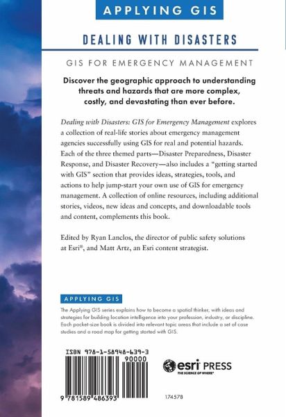 GIS for Emergency Management Discover a modern approach to understanding threats and hazards that are more complex, costly, and devastating than ever before. Dealing with Disasters: GIS for Emergency Management explores a collection of real-life case studies about emergency management agencies successfully using GIS for real and potential hazards. Each of the three themed parts-Preparedness, Disaster Response, and Disaster Recovery-also includes a "getting started with GIS" section that provides ideas, strategies, tools, and actions to help jump-start your own use of GIS for emergency management. A collection of online resources, including additional stories, videos, new ideas and concepts, and downloadable tools and content, complements this book. Edited by Ryan Lanclos, Esri's director of public safety solutions, and Matt Artz, an Esri content strategist.