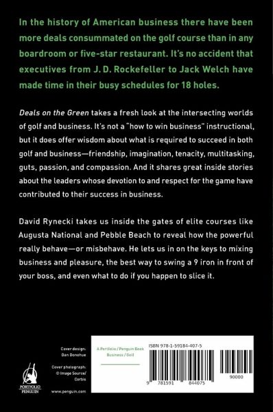 No matter how sophisticated the tools become-the e-mails and teleconferencing, the BlackBerries and PowerPoints-golf remains the true communications hub of American business In the history of American business there have been more deals consummated on the golf course than in any boardroom or five-star restaurant. It's no accident that executives from J. D. Rockefeller to Jack Welch have made time in their busy schedules for eighteen holes. Deals on the Green takes a fresh look at the interesting worlds of golf and business. It's not a "how to win business" instructional, but it does offer lessons about what is required to succeed in golf and in business-namely friendship, imagination, tenacity, multitasking, guts, passion, and compassion. And it shares great inside stories about the leaders whose devotion to and respect for the game have contributed to their success in business. Financial journalist David Rynecki takes us inside the gates of elite courses such as Augusta National and Pebble Beach to reveal how the wealthy and powerful really behave-or misbehave. He lets us in on the keys to mixing business and pleasure, the best way to swing a nine iron in front of your boss, and even what to do if you happen to slice it.