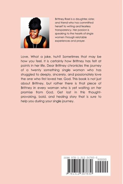Love. What a joke, huh? Sometimes that may be how you feel. It is certainly how Brittney has felt at points in her life. Dear Brittney chronicles the journey of a twenty something single woman who has struggled to deeply, sincerely, and passionately love the one who first loved her, God. This book is not just about Brittney, but rather there is that piece of Brittney in every woman who is yet waiting on her promise from God. Get lost in this thought-provoking, bold, and healing story that is sure to help you during your single journey.