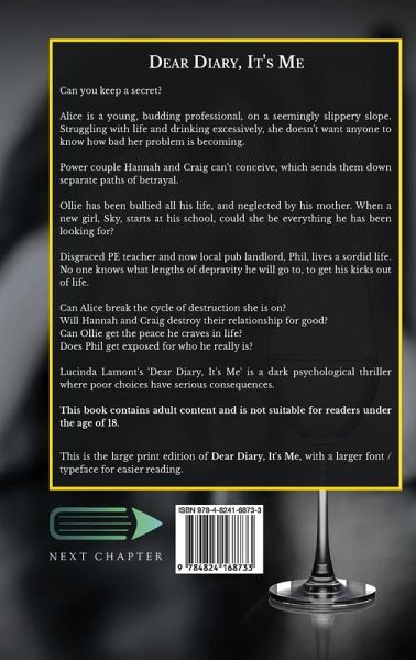 Can you keep a secret? Alice is a young, budding professional, on a seemingly slippery slope. Struggling with life and drinking excessively, she doesn't want anyone to know how bad her problem is becoming. Power couple Hannah and Craig can't conceive, which sends them down separate paths of betrayal. Ollie has been bullied all his life, and neglected by his mother. When a new girl, Sky, starts at his school, could she be everything he has been looking for? Disgraced PE teacher and now local pub landlord, Phil, lives a sordid life. No one knows what lengths of depravity he will go to, to get his kicks out of life. Can Alice break the cycle of destruction she is on? Will Hannah and Craig destroy their relationship for good? Can Ollie get the peace he craves in life? Does Phil get exposed for who he really is? Lucinda Lamont's 'Dear Diary, It's Me' is a dark psychological thriller where poor choices have serious consequences. This book contains adult content and is not suitable for readers under the age of 18. ¿¿¿This is the large print edition of Dear Diary, It's Me, with a larger font / typeface for easier reading.