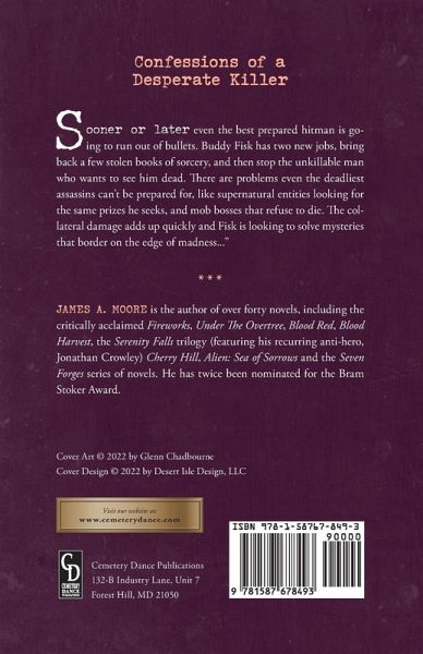 Featuring black and white illustrations by Glenn Chadbourne Confessions of a Desperate Killer Sooner or later even the best prepared hitman is going to run out of bullets. Buddy Fisk has two new jobs, bring back a few stolen books of sorcery, and then stop the unkillable man who wants to see him dead. There are problems even the deadliest assassins can't be prepared for, like supernatural entities looking for the same prizes he seeks, and mob bosses that refuse to die. The collateral damage adds up quickly and Fisk is looking to solve mysteries that border on the edge of madness... "Gripping, horrific, and unique, James Moore continues to be a winner, whatever genre he's writing in. Well worth your time." - Seanan McGuire, New York Times bestselling author of the InCryptid and Toby Daye series JAMES A. MOORE is the author of over forty novels, including the critically acclaimed Fireworks, Under The Overtree, Blood Red, Blood Harvest, the Serenity Falls trilogy (featuring his recurring anti-hero, Jonathan Crowley) Cherry Hill, Alien: Sea of Sorrows and the Seven Forges series of novels. He has twice been nominated for the Bram Stoker Award and spent three years as an officer in the Horror Writers Association, first as Secretary and later as Vice President.