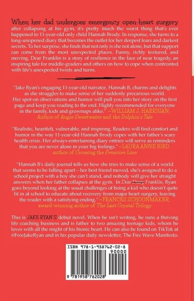 When her dad undergoes emergency open-heart surgery after collapsing at his gym, it's pretty much the worst thing that's ever happened to 11-year-old only child Hannah Brody. In response, she turns to a long-unopened diary that becomes the outlet for her deepest fears and darkest secrets. To her surprise, she finds that not only is she not alone, but that support can come from the most unexpected places. Funny, richly textured, and moving, Dear Franklin is a story of resilience in the face of near tragedy, an inspiring tale for middle-graders and others on how to cope when confronted with life's unexpected twists and turns.…mehr