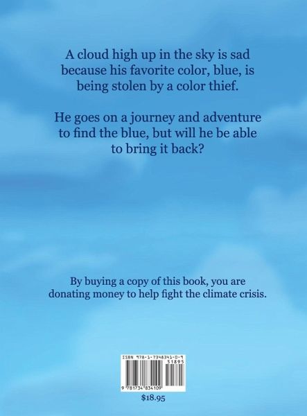 A cloud high up in the sky is sad because his favorite color, blue, is being stolen by a color thief. He goes on a journey and adventure to find the blue, but will he be able to bring it back? Things you can do to help the environment.