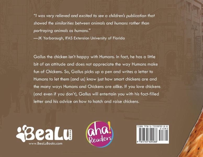 Gallus the chicken isn't happy with Humans. In fact, he has a little bit of an attitude and does not appreciate the way Humans make fun of his family. So Gallus picks up a pen and writes a letter to Humans to let them (and us) know just how smart chickens are and the many ways Humans and Chickens are alike. If you love chickens (and even if you don't), Gallus will entertain you with his fact-filled letter and his advice on how to hatch and raise chickens because Gallus believes Chickens and Humans can be friends. This book will entertain readers as they learn about: -Common sayings and jokes about chickens -How chickens protect themselves -How chickens and humans are alike -How smart chickens are -How to hatch and raise chickens -How to take care of chickens and provide them a safe place to live -What chickens eat -What the differences are between roosters and hens