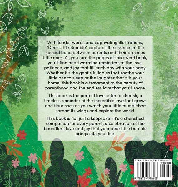 With tender words and captivating illustrations, "Dear Little Bumble" captures the essence of the incredible bond between parents and their precious little ones. From the first magical moments to the laughter-filled days, and even the sweet challenges, this book celebrates the joys and the milestones that make parenthood an unforgettable experience. As you turn the pages of this special book, you'll find heartwarming reminders of the love, patience, and joy that fill each day with your baby. Whether it's the gentle lullabies that soothe your little one to sleep or the laughter that fills your home, this book is a testament to the beauty of parenthood and the endless love you'll share. Get ready to embark on a beautiful journey, hand in hand with your precious baby. "Dear Little Bumble" is the perfect love letter to cherish, a timeless reminder of the incredible love that grows and flourishes as you watch your little bumblebee spread its wings and explore the world. This book is not just a keepsake-it's a cherished companion for every parent, a celebration of the boundless love and joy that your dear little bumble brings into your life.