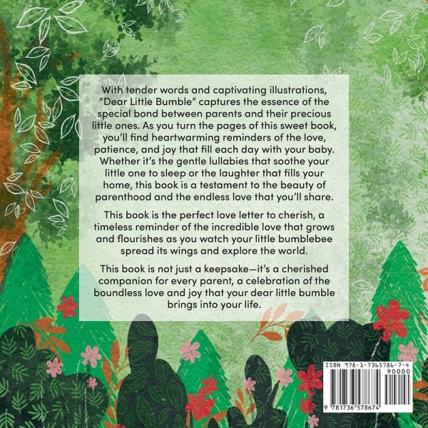 With tender words and captivating illustrations, "Dear Little Bumble" captures the essence of the incredible bond between parents and their precious little ones. From the first magical moments to the laughter-filled days, and even the sweet challenges, this book celebrates the joys and the milestones that make parenthood an unforgettable experience. As you turn the pages of this special book, you'll find heartwarming reminders of the love, patience, and joy that fill each day with your baby. Whether it's the gentle lullabies that soothe your little one to sleep or the laughter that fills your home, this book is a testament to the beauty of parenthood and the endless love you'll share. Get ready to embark on a beautiful journey, hand in hand with your precious baby. "Dear Little Bumble" is the perfect love letter to cherish, a timeless reminder of the incredible love that grows and flourishes as you watch your little bumblebee spread its wings and explore the world. This book is not just a keepsake-it's a cherished companion for every parent, a celebration of the boundless love and joy that your dear little bumble brings into your life.