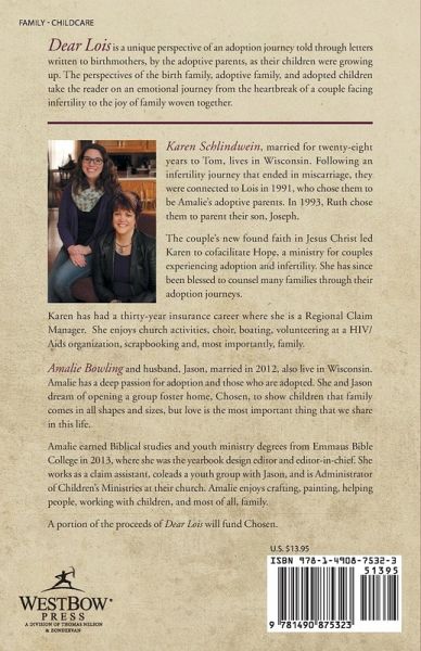 Dear Lois is a unique perspective of an adoption journey told through letters written to birthmothers, by the adoptive parents, as their children were growing up. The perspectives of the birth family, adoptive family, and adopted children take the reader on an emotional journey from the heartbreak of a couple facing infertility to the joy of family woven together.