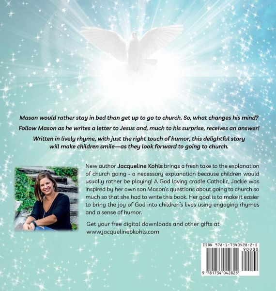 Before church, do your Sunday mornings sound like this? Can I just stay at home? Can’t we SKIP? But I want to go out and PLAY! Mason is a typical child who would rather stay at home on Sundays and have FUN! He doesn’t understand why his mom wants him to attend church every week. His solution? Write a letter to Jesus! Ready for the twist? Jesus writes him back! Children will understand exactly what Mason is feeling, because they feel the same way! The answers given in the letter from Jesus will make sense to your child, just as they do for Mason. Parents will appreciate the many subtle lessons in this book, while children will appreciate the lively rhymes and sense of humor. Get it now and help your child look forward to going to church!