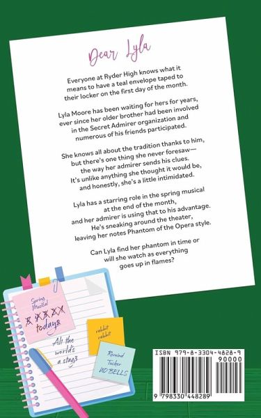 Everyone at Ryder High knows what it means to have a teal envelope taped to their locker on the first day of the month. Lyla Moore has been waiting for hers for years, ever since her older brother had been involved in the Secret Admirer organization and numerous of his friends participated. She knows all about the tradition thanks to him, but there's one thing she never foresaw-the way her admirer sends his clues. It's unlike anything she thought it would be, and honestly, she's a little intimidated. Lyla has a starring role in the spring musical at the end of the month, and her admirer is using that to his advantage. He's sneaking around the theater, leaving her notes Phantom of the Opera style. Can Lyla find her phantom in time or will she watch as everything goes up in flames?