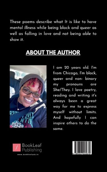 I am 20 years old. I'm from Chicago, I'm black, queer and non- binary my pronouns are She/They. I love poetry, reading and writing it's always been a great way for me to express myself without limits. And hopefully I can inspire others to do the same.