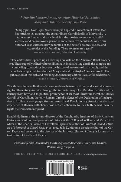 This compelling collection of correspondence between a father and a son documents the history of eighteenth-century America through the intimate story of a family and the journey from boyhood to political prominence of its most illustrious member, Charles Carroll of Carrollton, the only Roman Catholic signer of the Declaration of Independence. Beginning in the late 1740s, when "Papa" (Charles Carroll of Annapolis) sent "Charley" (Charles Carroll of Carrollton) away from his native Maryland to be educated in Europe, the letters present a new perspective on colonial and Revolutionary America as the lived experience of Roman Catholics, whose defiant adherence to their faith denied them the civil rights and guarantees--including the right to hold office and to vote--that their Protestant counterparts enjoyed. This context accentuates the drama of Charley's rise to power during the Revolution, the necessity of the political and economic compromises he felt compelled to make, and the ultimately tragic personal price exacted by his success. Bringing the Carroll's public and private lives sharply into focus, these volumes present the past in its fullest human dimensions.