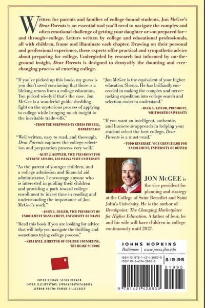 Written for parents and families of college-bound students, Jon McGee's Dear Parents is an essential tool you'll need to navigate the complex and often emotional challenge of getting your daughter or son prepared for--and through--college. Organized chronologically, the book takes readers through the stages of childhood leading up to college, as well as the process of searching for and selecting a college. From the decisions you make during your child's early years to the process of setting up their dorm room, this book provides parents with insights, wisdom, and guidance about college, college preparation, and choosing a college. Letters written by college and educational professionals, all with children, frame and illuminate each chapter. Drawing on their personal and professional experience, these experts offer practical and sympathetic advice about preparing for college. The book concludes with insights about sending children off to college and the appropriate roles for parents as your children experience these important years. Undergirded by research but informed by on-the-ground insight, Dear Parents is designed to both engage and inform while demystifying the daunting and ever-changing process of entering college. "If you've picked up this book, my guess is you don't need convincing that there is a lifelong return from a college education. You want to understand the process better and you'd like to help your teen smartly navigate their choices. You picked wisely if that's the case.... Jon McGee is a wonderful guide, shedding light on the mysterious process of applying to college while bringing much insight to the inevitable trade-offs."--from the foreword by Chris Farrell, Marketplace