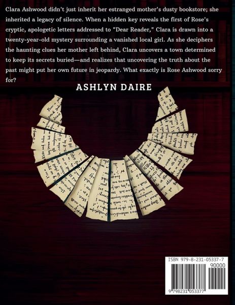 Her mother left her a bookstore filled with stories... but the most dangerous one wasn't on the shelves. The letters begin, "Dear Reader, I'm Sorry." But what unforgivable secret was Rose Ashwood trying to confess? For fans of Lisa Jewell and Shari Lapena comes a haunting psychological suspense novel where inheriting a beloved small-town bookstore means unearthing secrets somebody wants kept buried. Clara Ashwood never expected to return to the sleepy, suffocating town she fled years ago. But when her estranged mother, Rose, dies in a sudden accident at the family's independent bookstore, Clara is drawn back to handle the estate-a duty she intends to perform with detached efficiency. The store, Ashwood & Sons, is a relic filled with dusty first editions and the ghosts of conversations Clara and her mother never had. Her perfunctory visit takes a chilling turn when she discovers a hidden key inside her mother's favorite book. It unlocks a drawer containing the first of many cryptic, unsent letters, all addressed to "Dear Reader" and signed with a heartbreaking apology. The letters hint at a dark secret Rose carried for twenty years, connected to the baffling disappearance of a local teenage girl, Eliza Grey, back in 1998. Haunted by her mother's fragmented confessions and the town's determined silence, Clara is pulled into the mystery. Aided by a reclusive ex-journalist who knows Ashwood's secrets all too well, she begins to decipher the intricate puzzle Rose left behind-a trail woven through hidden alcoves, annotated classics, and the very landscape of the town. But the deeper Clara digs, the clearer it becomes that Rose's "accident" might have been anything but.