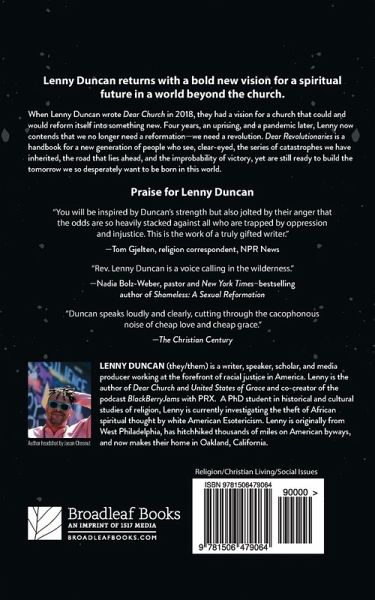 When Lenny Duncan wrote Dear Church in 2018, they had a vision for a church that could and would reform itself into something new. After four years, a pandemic, a global uprising for racial equity, and what Duncan describes as "the death of the republic" on January 6, 2021, we now live in a vastly different landscape than the one Duncan wrote about previously. Lenny now contends that we no longer need a reformation--we need a revolution. Dear Revolutionaries is a handbook for a new generation that sees, clear-eyed, the series of catastrophes we have inherited, the road that lies ahead, and the improbability of victory, yet are still ready to build the tomorrow we so desperately want to be born in this world. The institutional church is concerned with reviving itself. God is concerned with reviving the community within and beyond the walls of the church. Dear Revolutionaries is a book for the community who is ready to rise up and build something new from the ashes. Casting a vision for a new spiritual future led by the people, Dear Revolutionaries offers a series of peace-building practices that will give readers the tools to build, guide, and care for spiritual community in a world beyond the church.