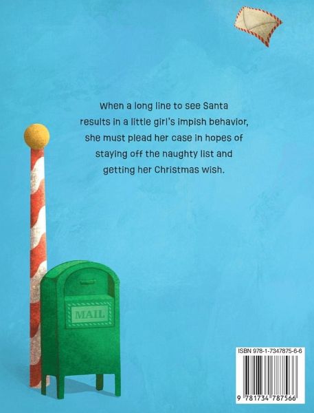When a long line to see Santa results in a little girl's impish behavior, she must plead her case in hopes of staying off the naughty list and getting her Christmas wish. More details about this book: This short and entertaining slice-of-life story begins with a little girl writing to Santa to explain why she missed seeing him during her outing at the mall. In her letter she recounts her mischievous antics as innocently seen from her childhood perspective. She then concludes her letter with an unintentionally ironic and funny statement about how good she's been. BUT WAIT! It's not over just yet. She includes a "p.s." on the back of her letter (illustrated) which shows her truly repentant heart and results in a very happy ending (depicted through illustrations).