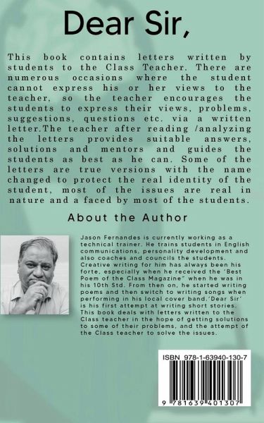 This book contains letters written by students to the Class Teacher. There are numerous occasions where the student cannot express his or her views to the teacher, so the teacher encourages the students to express their views, problems, suggestions, questions etc. via a written letter. The teacher after reading /analyzing the letters provides suitable answers, solutions and mentors and guides the students as best as he can. Some of the letters are true versions with the name changed to protect the real identity of the student, most of the issues are real in nature and a faced by most of the students. The replies and solutions are kept as simple for students to understand. This book is written keeping in mind the sensitive and vulnerable nature of the students.