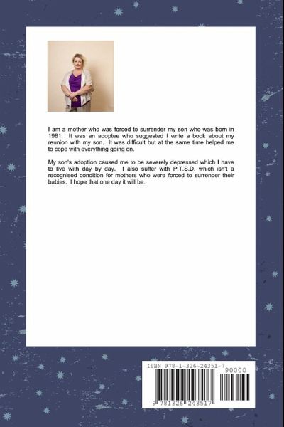 My life as a daughter, sister, wife, mother and an adoption survivor. When I was 19 years old I was forced to surrender my son. It broke my heart and I became severely depressed which included self harming and being suicidal over the years. In 2004 I found my son who had been searching for me and had found my family in 1999. I had fallen out with my family in 1999 but from 2001 (we had moved) I let my parents know where my husband and I were but they chose not to tell my son. Life has been a rollercoaster but reunion hasn't made up for the lost years and the pain is always with me.