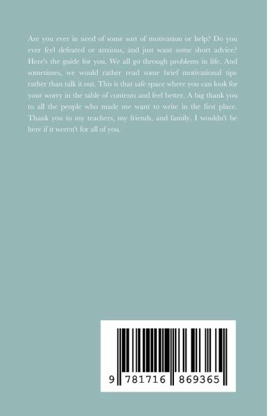 The perfect guide for teenagers to turn to whenever they are feeling anxious, defeated, or alone. It's a safe space filled with numerous tips on how to cope with everyday struggles. Remember, you are not the only one. We're here for you.