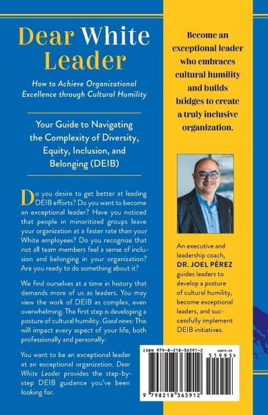 Your Guide to Navigating the Complexity of Diversity, Equity, Inclusion, and Belonging (DEIB) Become an exceptional leader who embraces cultural humility and builds bridges to create a truly inclusive organization. Do you desire to get better at leading DEIB efforts? Do you want to become an exceptional leader? Have you noticed that people in minoritized groups leave your organization at a faster rate than your White employees? Do you recognize that not all team members feel a sense of inclusion and belonging in your organization? Are you ready to do something about it? We find ourselves at a time in history that demands more of us as leaders. You may view the work of DEIB as complex, even overwhelming. The first step is developing a posture of cultural humility. Good news: This will impact every aspect of your life, both professionally and personally. You want to be an exceptional leader at an exceptional organization. Dear White Leader provides the step-by-step DEIB guidance you've been looking for.