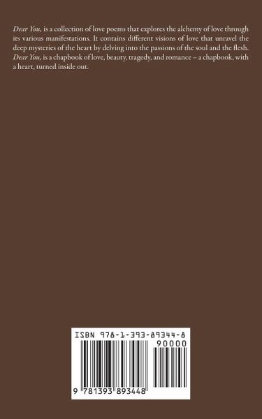 Dear You, is a collection of love poems that explores the alchemy of love through its various manifestations. It contains different visions of love that unravel the deep mysteries of the heart by delving into the passions of the soul and the flesh. Dear You, is a book of love, beauty, tragedy, and romance - a book, with a heart, turned inside out. She walks with butterflies She walks with butterflies All around her body, And light shines upon her skin from head to toe. It must be her, Her serpentine beauty that beguiles my eyes. O, love, it is as if roses were made from her lips. See how, when she laughs, the sweetest petals bepaint her cheeks. And as this fine maiden passes by, A flower blooms wherever she treads her feet. Tell me, how does she do it? How does she make the Moon hang by the glow on her face? How does she teach the stars to twinkle in the night? Even her skin reflects a thousand moonbeams While her eyes move the Sun to rise, and burn bright. O, how, love? How does she capture light with her own light? That in her absence or as when she frowns, The universe would turn afoul That all heavens, whether day or night, Would weep the saddest woe To unbridle her from such gloomy plight. Yet the more I cannot tell The thoughts that court her mind But they must be sweeter than the music of the nightingale For no beauty as hers should hear a tinge of whisper That can produce even the slightest ail. But if her beauty is devoured By the wiles of envious time, The more praises I will give, For her beauty shall for-ever live In my verse, in my love, and in my rhyme. I grieve for the ignorant poetry I grieve for the ignorant poetry For they know not what they write Because if they only see that which I see, All their daring lines shall be called a spite. God knows, every word of beauty, Expresses none but you. O, is it not insulting, love, that they compare you to a flower? When even the meekest bud has seen what is true: "In her presence, do all flowers shy away; And how, when she walks, The greenest grass bow and praise; That even the winds fall silent and listen when she talks." And, love, when you blink, as when on our bed you lay, That's how the Sun knows That the night must now be turned to day. 'How about the beauty of the rose?' they ask. "But that's too poor a cliché." I say. Remember, how, a rose, is embarrassed when you hold Such poor rose - its esteemed beauty drops and fades away. Decay - decay. More - I can show; but much - I'd rather leave untold. Yet, forgive them, my saint, Because I, too, am as guilty as their lines For writing too frail a verse. But how to write? When even Cupid's pen will take a thousand times to nurse! But, this I write to tell What the best of quills unknowingly hold as true: That not one can tell, but can only praise The poorest inch of you.