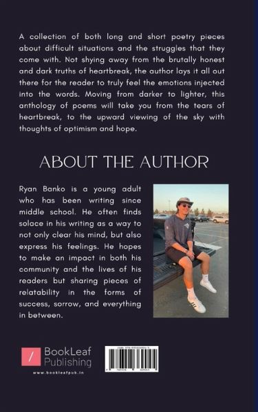 A collection of both long and short poetry pieces about difficult situations and the struggles that they come with. Not shying away from the brutally honest and dark truths of heartbreak, the author lays it all out there for the reader to truly feel the emotions injected into the words. Moving from darker to lighter, this anthology of poems will take you from the tears of heartbreak, to the upward viewing of the sky with thoughts of optimism and hope.