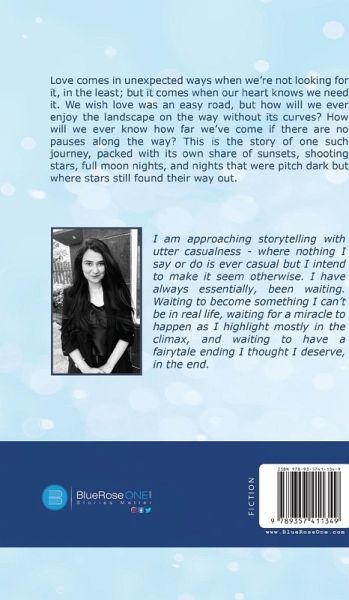 "Love comes in unexpected ways, when we're not looking for it, in the least; but it comes when our heart knows we need it. We wish love was an easy road, but how will we ever enjoy the landscape on the way without its curves? How will we ever know how far we've come if there are no pauses along the way? This is the story of one such journey, packed with its own share of sunsets, shooting stars, full moon nights, and nights that were pitch dark but where stars still found their way out."
