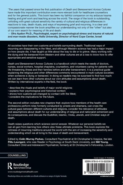 "The years that passed since the first publication of DEATH AND BEREAVEMENT ACROSS CULTURES have made this important contribution even more relevant both for healthcare counselors and for the general public. This book has been my faithful companion on my arduous trauma healing and grief work and teaching across the world. The range of the book is outstanding, unfolding with great cultural sensitivity the variety of cultural and religious differences in reactions to loss, death rituals and ways of expressing grief and mourning. In a clear and compassionate manner the books amplifies our understanding not only of the 'other' but also of our own search for meaning of life and death." - Ofra Ayalon Ph.D., Psychologist, expert on psychological stress and trauma of natural & man-made disasters, Haifa University, Director of Nord Cope Center