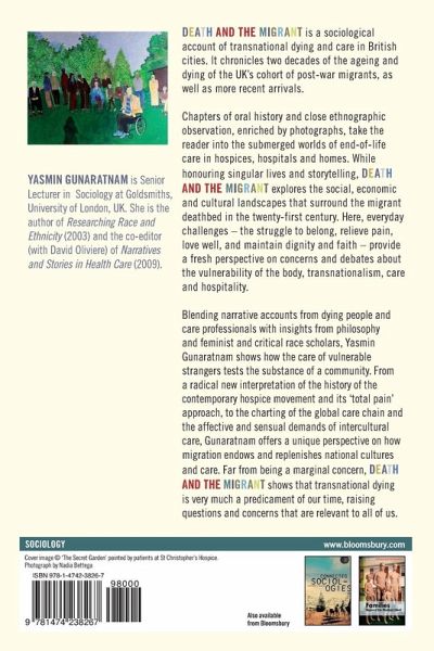 This book is available as open access through the Bloomsbury Open Access programme and is available on www.bloomsburycollections.com. Death and the Migrant is a sociological account of transnational dying and care in British cities. It chronicles two decades of the ageing and dying of the UK's cohort of post-war migrants, as well as more recent arrivals. Chapters of oral history and close ethnographic observation, enriched by photographs, take the reader into the submerged worlds of end-of-life care in hospices, hospitals and homes. While honouring singular lives and storytelling, Death and the Migrant explores the social, economic and cultural landscapes that surround the migrant deathbed in the twenty-first century. Here, everyday challenges - the struggle to belong, relieve pain, love well, and maintain dignity and faith - provide a fresh perspective on concerns and debates about the vulnerability of the body, transnationalism, care and hospitality. Blending narrative accounts from dying people and care professionals with insights from philosophy and feminist and critical race scholars, Yasmin Gunaratnam shows how the care of vulnerable strangers tests the substance of a community. From a radical new interpretation of the history of the contemporary hospice movement and its 'total pain' approach, to the charting of the global care chain and the affective and sensual demands of intercultural care, Gunaratnam offers a unique perspective on how migration endows and replenishes national cultures and care. Far from being a marginal concern, Death and the Migrant shows that transnational dying is very much a predicament of our time, raising questions and concerns that are relevant to all of us.