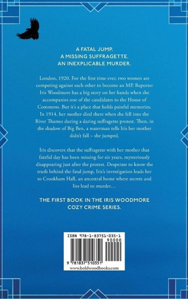 A fatal jump. A missing suffragette. An inexplicable murder. London, 1920. For the first time ever, two women are competing against each other to become an MP. Reporter Iris Woodmore has a big story on her hands when she accompanies one of the candidates to the House of Commons. But it's a place that holds painful memories. In 1914, her mother died there when she fell into the River Thames during a daring suffragette protest. Then, in the shadow of Big Ben, a waterman tells Iris her mother didn't fall - she jumped. Iris discovers that the suffragette with her mother that fateful day has been missing for six years, mysteriously disappearing just after the protest. Desperate to know the truth behind the fatal jump, Iris's investigation leads her to Crookham Hall, an ancestral home where secrets and lies lead to murder... The first book in the Iris Woodmore cozy crime series. Previously published as The Suffragette's Daughter "What a great book! Highly recommend... to anyone who likes historical fiction and a twisty plot." Sarah Bourne What real readers are saying: "The story is full of mystery, intrigue and twists, and Iris is a great lead character you can really get behind." "We are plunged into a twisting tale of secrets, families and politics and the characters are fabulously created." "The pace of the story keeps you guessing who did what and why and there is plenty of artiso family drama. Fans of Downton Abbey will dive right into this one!"